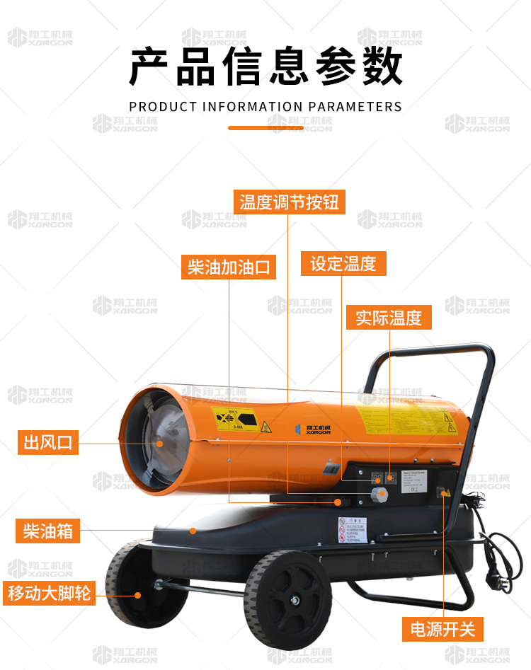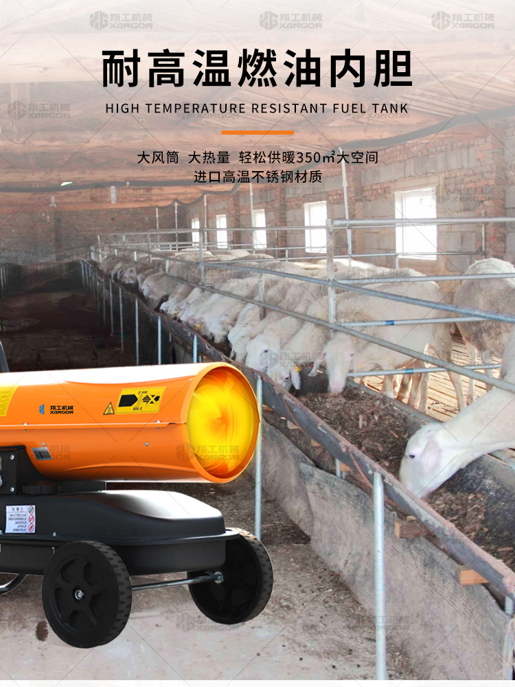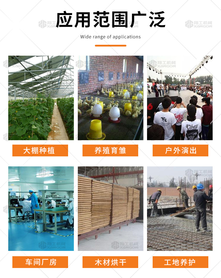 翔工工業燃油暖風機主要適用于大棚育植、食品烘干、茶葉烘干、育雛養殖、 木材解凍、戶外演出等需要供暖的地方。